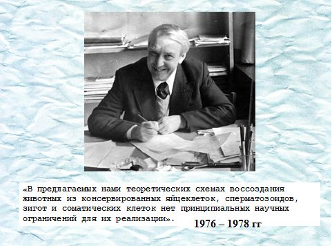 В 1984 году – создано хранилище Генетического Криобанка редких и исчезающих видов Института Биофизики АН СССР.
